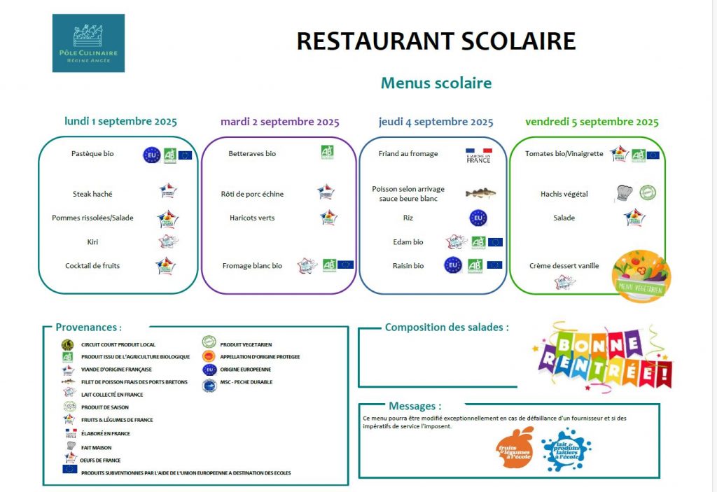 MENU SITE DU 29 SEPTEMBRE AU 3 OCTOBRE 2025